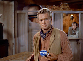 It just makes me laugh. Sterling Hayden, epitome of masculinity, holding a dainty, PERFECTLY CLEAN, bright blue & white teacup. If that isn't the whole of Johnny Guitar in one image, then I don't know what is.